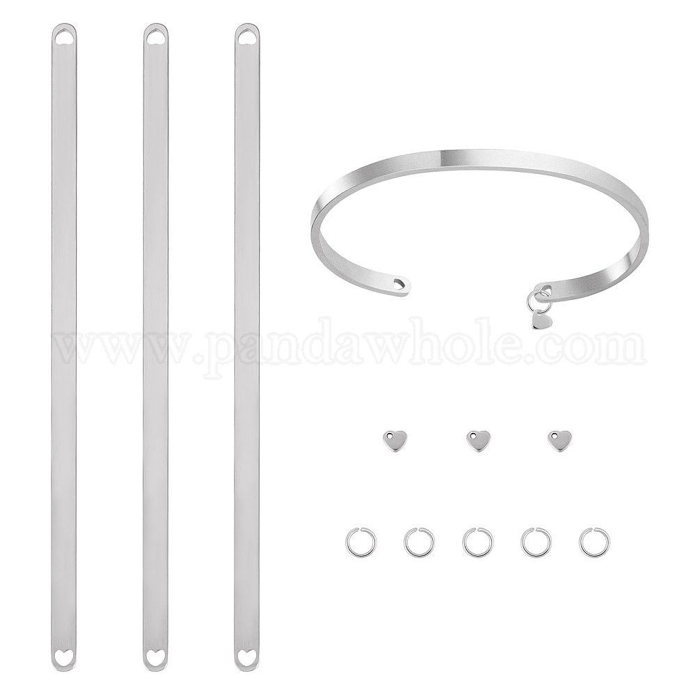 Наборы для самостоятельного изготовления браслетов-манжет, В комплект входят 3 заготовок для браслетов из нержавеющей стали., 3 шт. 304 подвески из нержавеющей стали и 5 шт. открытые соединительные кольца