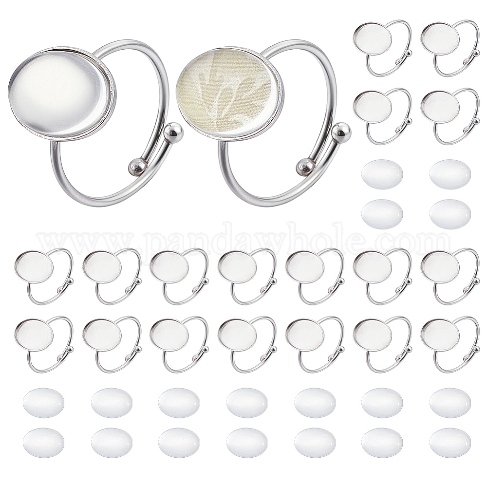 Наборы для самостоятельного изготовления овальных колец, включая 304 регулируемые кольца из нержавеющей стали, Кабошоны из стекла