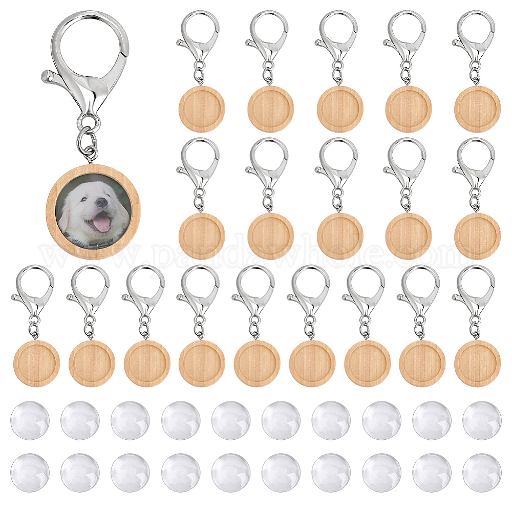 Сделай сам наборы для ключей, включая деревянные плоские круглые подвески с застежками-карабинами из нержавеющей стали и стеклянными кабошонами. (037RK2)