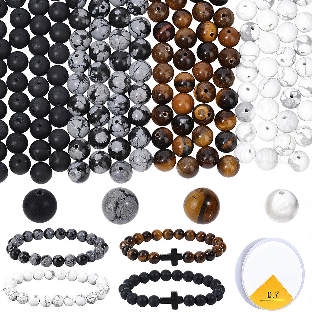 • Смешанные камни Набор для изготовления браслетов своими руками, включая бусины из натурального тигрового глаза высшего качества, снежинки, черного агата и хаулита., хрустальная эластичная эластичная нить, 8 мм, отверстие : 1 мм