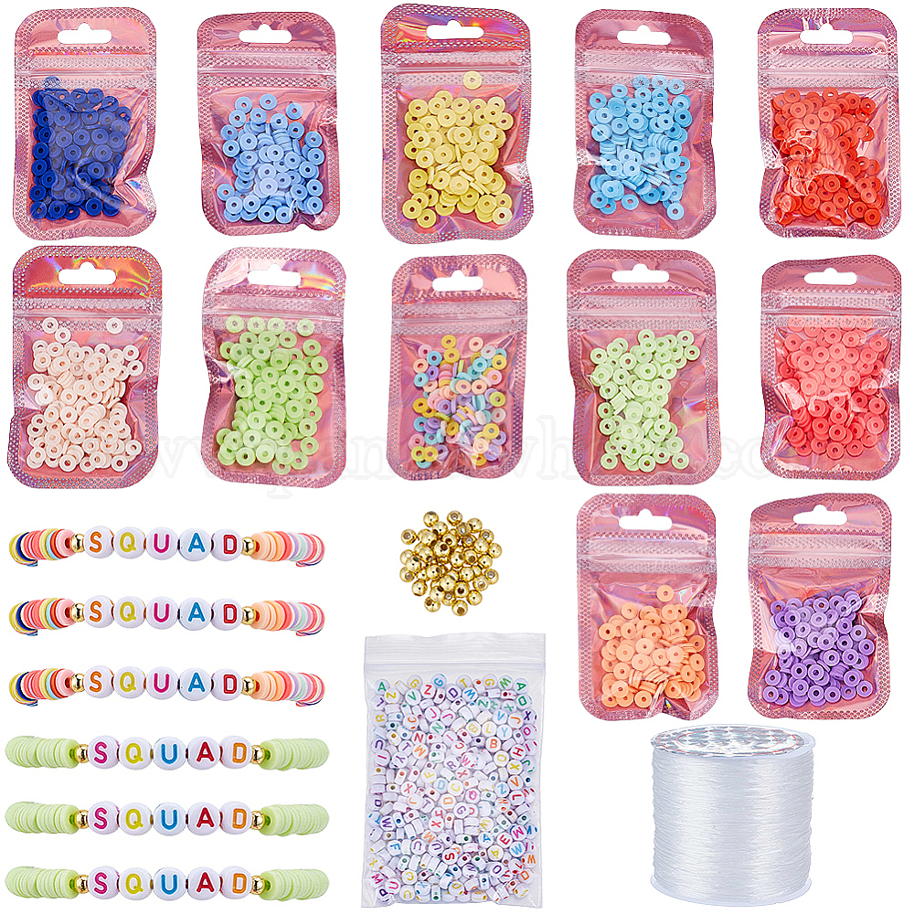 Наборы браслетов своими руками, в том числе бусины из полимерной глины, пластиковые бусины abs, Акриловые бусины, почтовый замок сумки, плоская эластичная кристаллическая струна