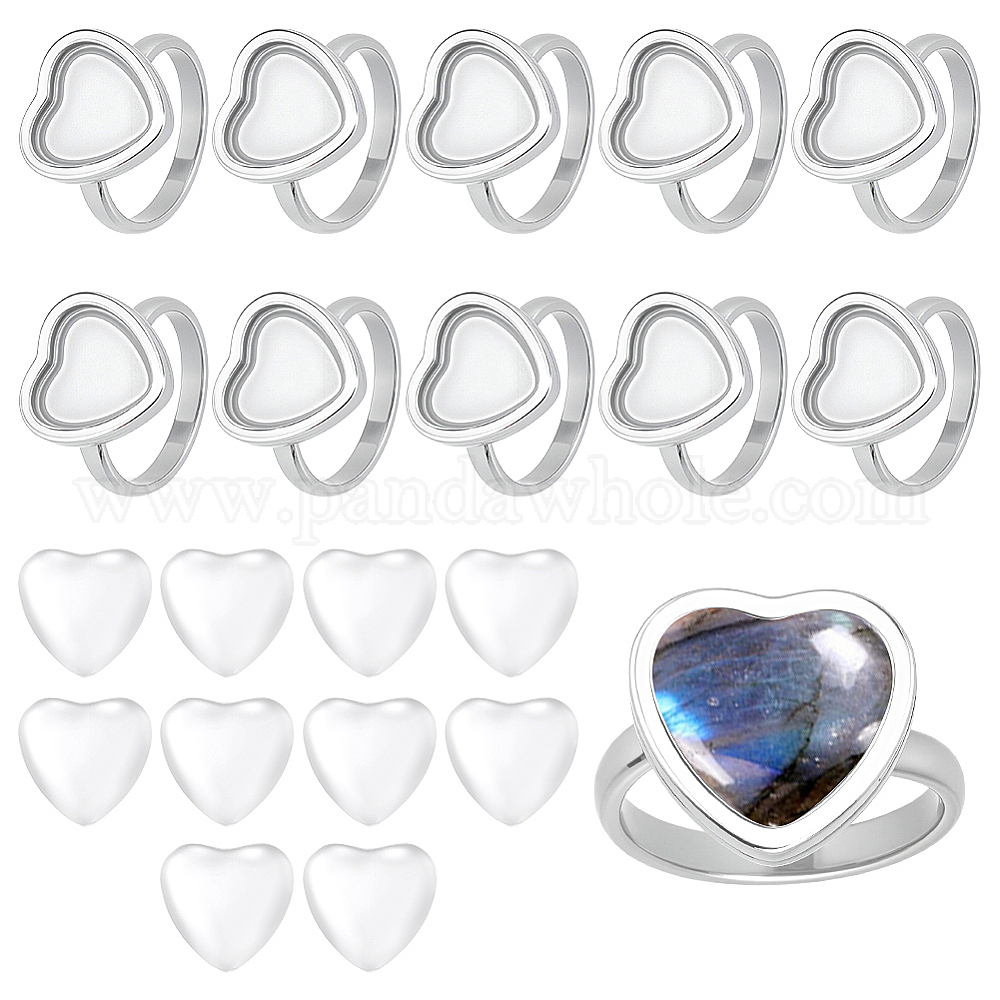 Наборы для изготовления колец в форме сердца из нержавеющей стали своими руками, включают прозрачные стеклянные кабошоны в форме сердца
