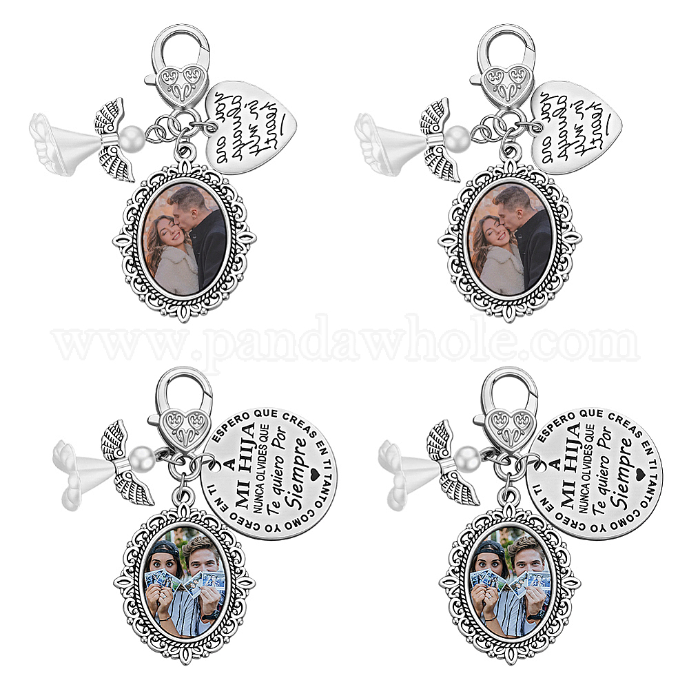 4 шт. самодельные заготовки для подвесных украшений из сплава и акрила в форме овала, со стеклянными кабошонами и застежками-карабинами из сплава