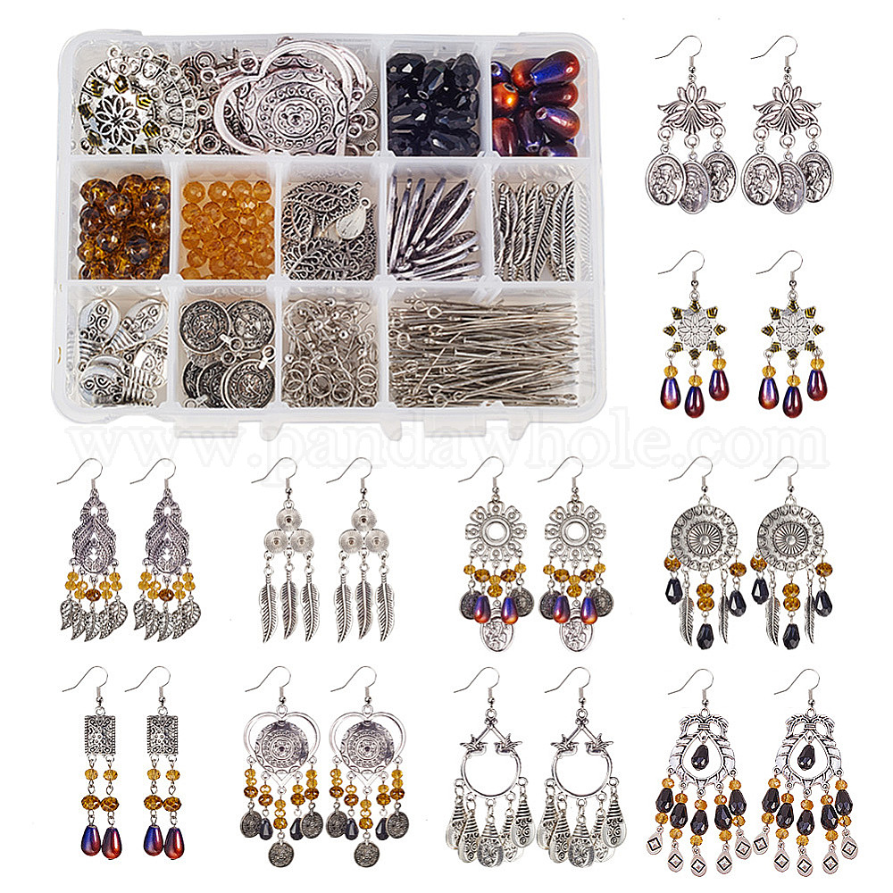 DIY серьги решений, с элементами из люстры из тибетского сплава, настройки соединителя кабошона, стеклянные бусины ручной работы и латунные крючки для серьги