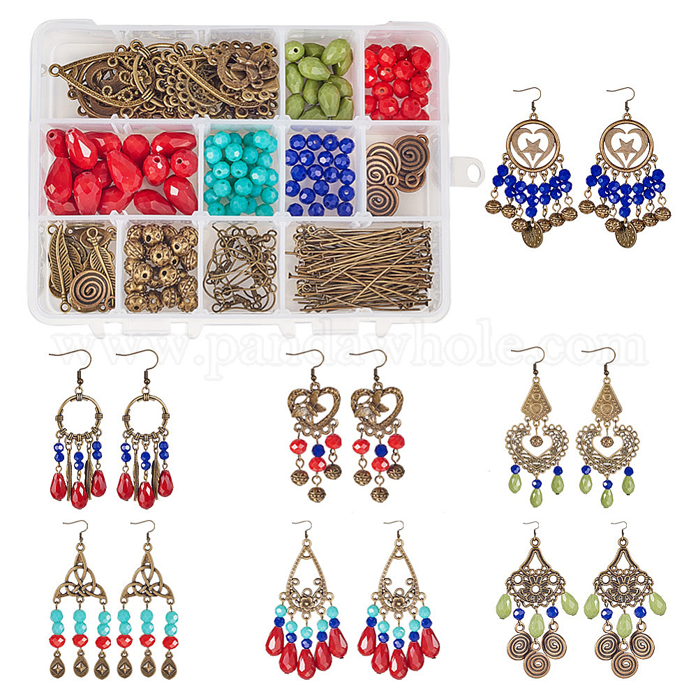 DIY серьги решений, с тибетскими элементами люстры, звеньями / подвесками / бисером, стеклянные бусины и железные открытые прыжковые кольца