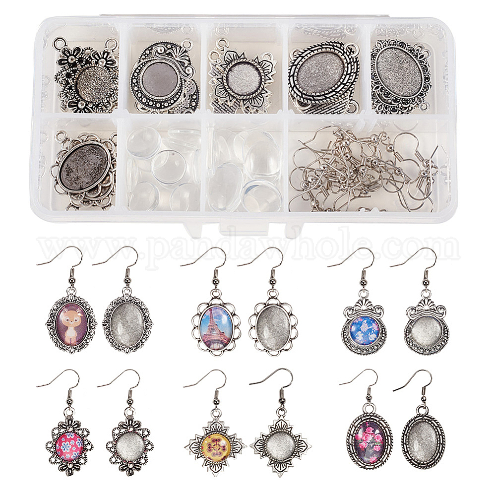 DIY серьги решений, с тибетанами стиль подвески кабошон настройки, прозрачные стеклянные кабошоны и латунные крючки для серьги