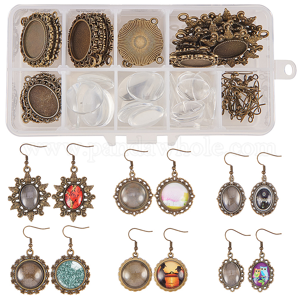 DIY серьги решений, Сеттинги для кулона ( кабошон ), тибетский стиль, прозрачные стеклянные кабошоны и латунные крючки для серьги