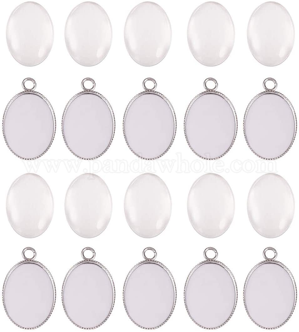 Поделки изготовления ювелирных изделий, с настройками подвесного кабошона из нержавеющей стали 304 и кабошонами из прозрачного стекла, овальные