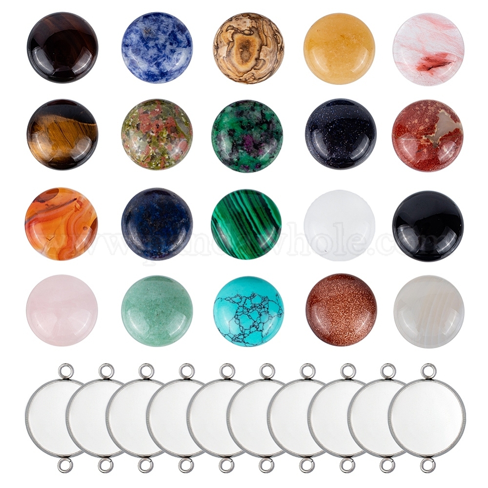 • Смешанные камни Создание ссылок, с полукруглыми кабошонами из драгоценных камней и настройками 304 кабошонов из нержавеющей стали, 125x115x11.5 мм