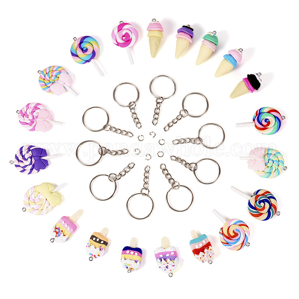 Наборы для ключей, с ручной полимерной глины подвески, с железным винтом с проушиной, с металлическими кольцами для ключей, мороженое, леденец и мороженое