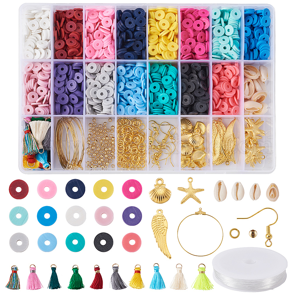 Сделай сам комплект украшений, с бисером хэйши из полимерной глины ручной работы, карие бусины, Подвески из сплава , латунные бусы и серьги, Эластичная кристальная нить, кулон с кисточкой из нейлоновой нити