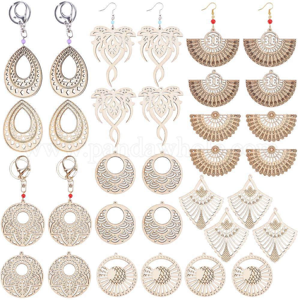 Сделай сам серьги, с латунными крючками для серег, неокрашенные деревянные большие подвески, Акриловые бусины, железо & сплав брелок, железный штифт