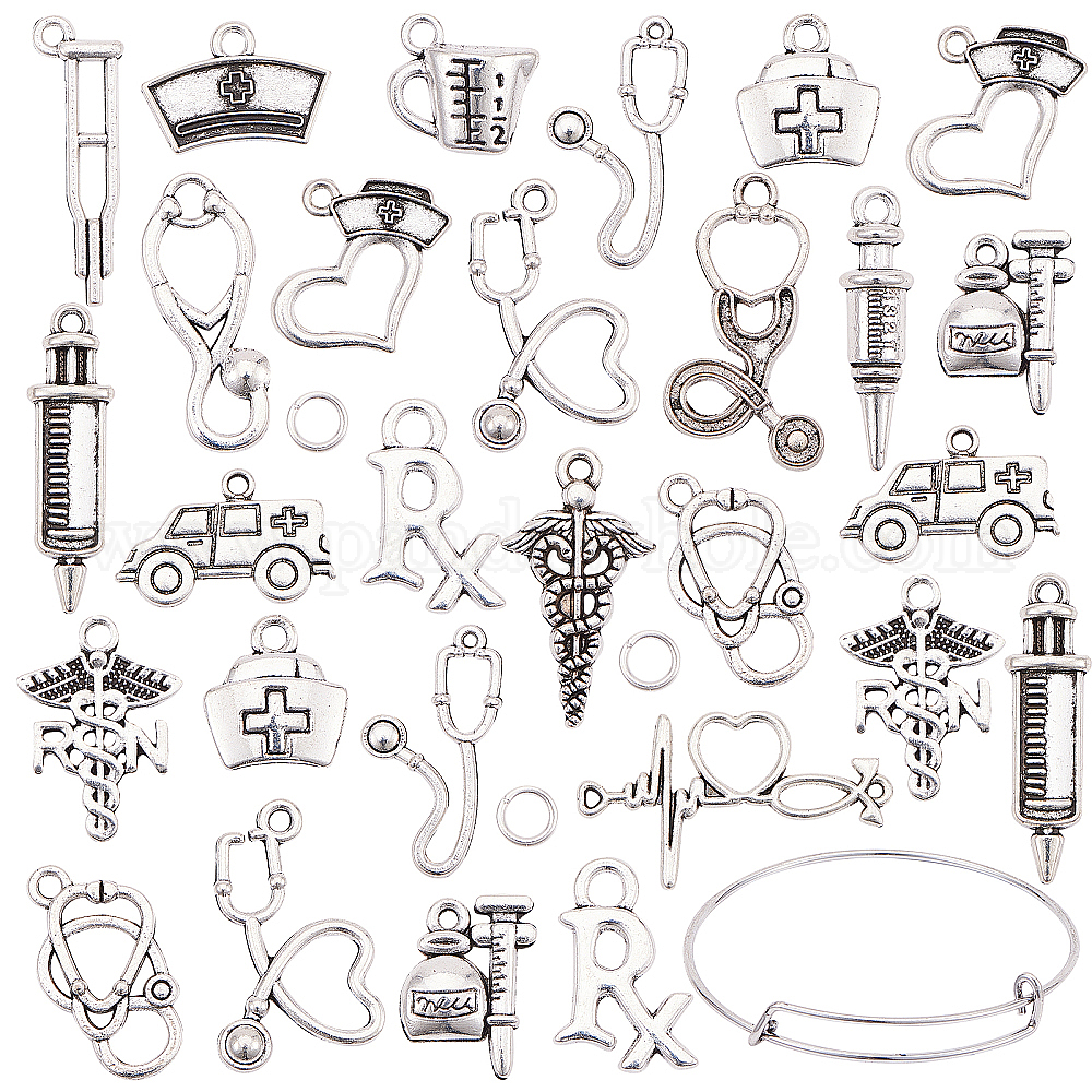 Сделай сам браслет темы дня медсестры, с подвесками из сплава и эмалью, изготовление железных браслетов и прыжковые кольца