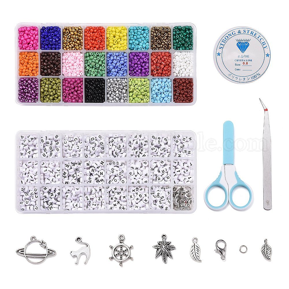 Сделай сам стрейч комплекты ювелирных изделий, с акриловыми шариками, Подвески из сплава , Бисер из стекла , Эластичная кристальная нить, железные кольца и ножницы из нержавеющей стали