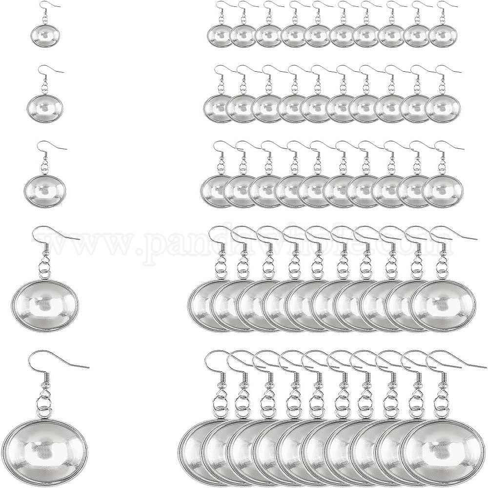 Сделай сам серьги, с настройками 304 подвесного кабошона из нержавеющей стали, 316 хирургические крючки для серег из нержавеющей стали, Кабошоны из стекла