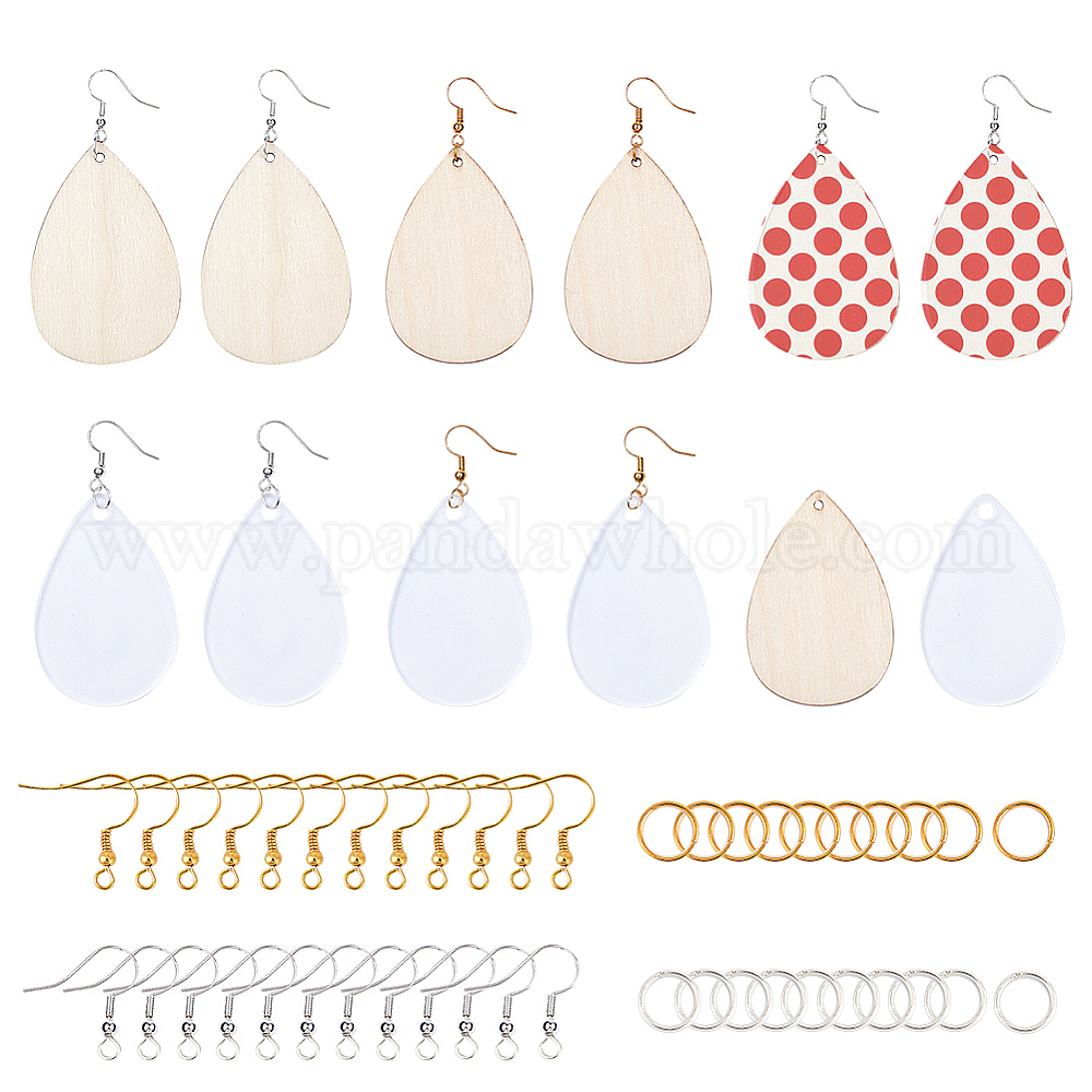 Sunnyclue diy висячие серьги makings, с заготовкой из акрила / необработанного дерева большие подвески, латунные крючки для серьги и железные кольца, слеза (0229HB)