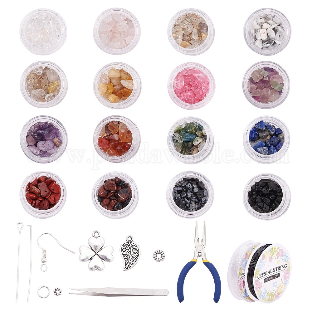 Сделай сам комплект украшений, с драгоценными камнями чип бисера, бусины и подвески из сплава, железные крючки и булавки для серег, Эластичная кристальная нить, железный пинцет