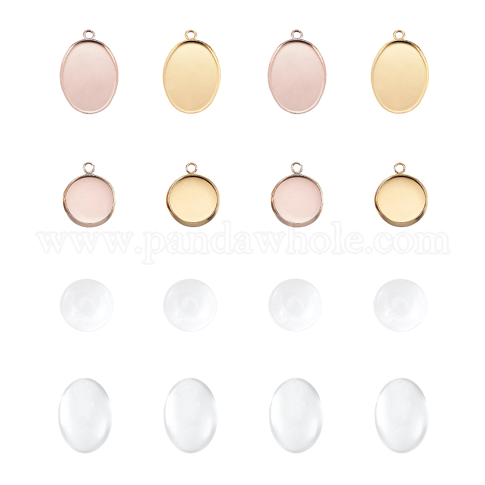 Поделки кулон решений, с вакуумным покрытием PVD 304 подвесные кабошоны из нержавеющей стали и прозрачные стеклянные кабошоны, овальные и круглые плоские (022YM6)