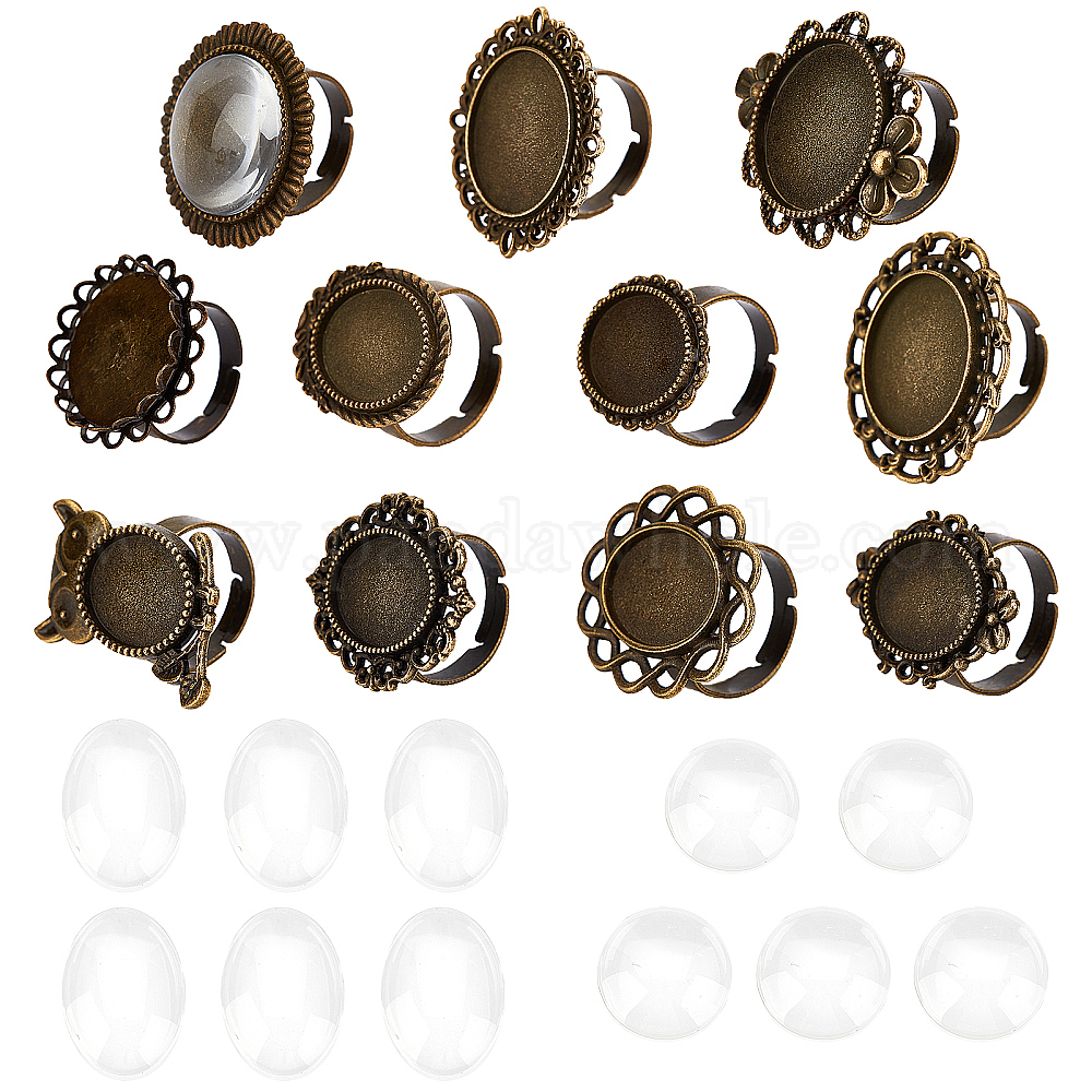 Наборы для изготовления колец на палец, с прозрачными стеклянными кабошонами, винтажные регулируемые компоненты кольца из железа и латуни, сплав, кабошон, безель