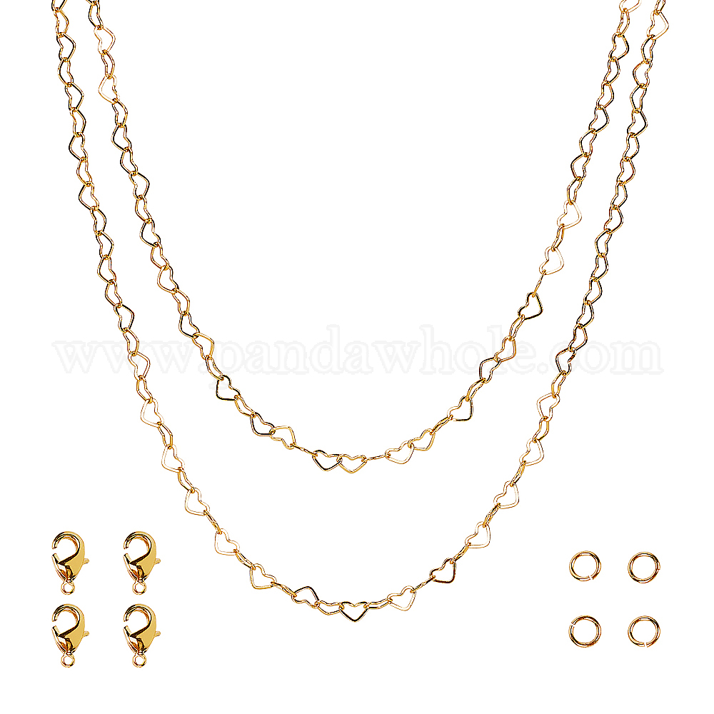 Ювелирные комплекты diy, с запаянными латунными цепочками ручной работы в форме сердца, застежками в виде когтей лобстера и открытыми прыжковыми кольцами