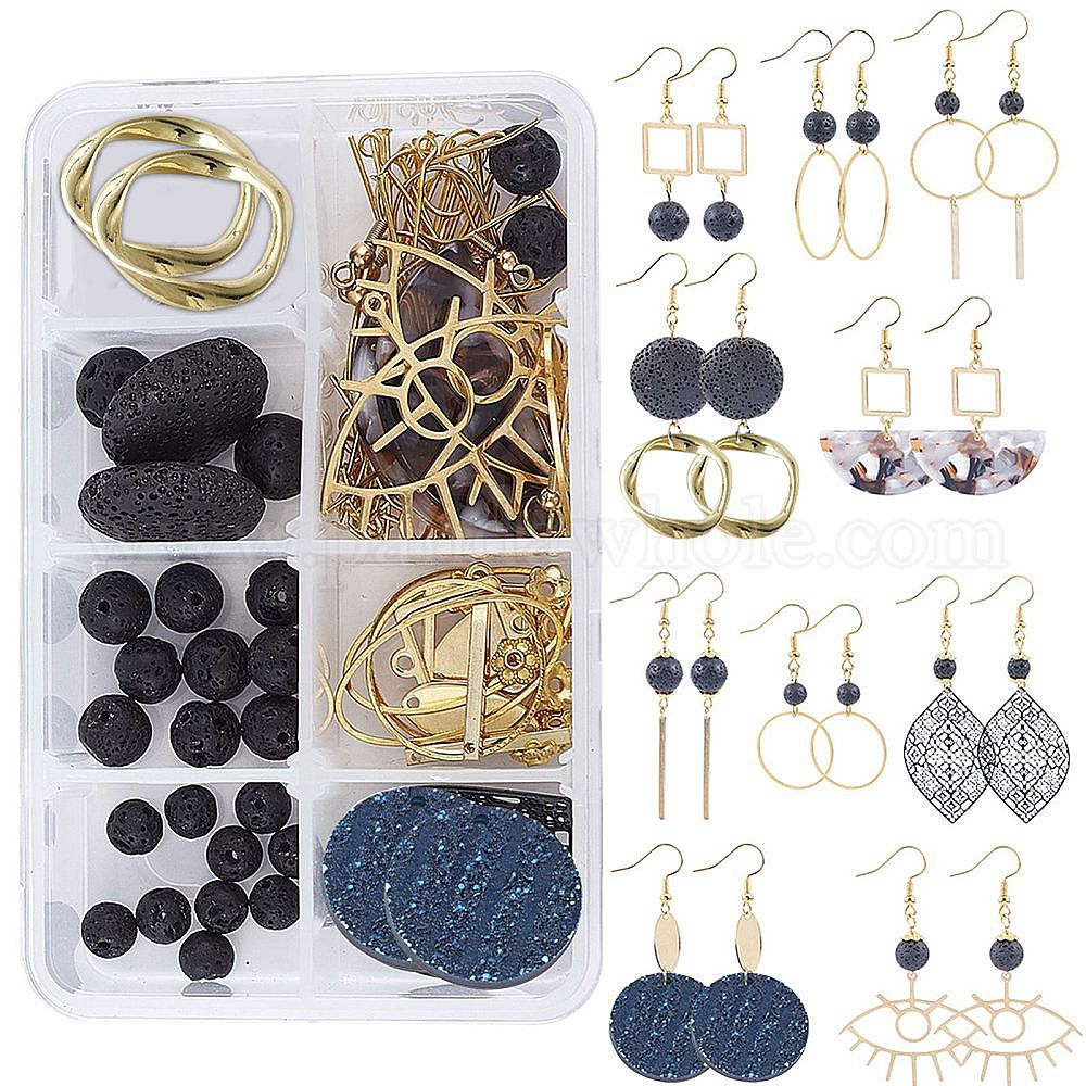 Комплекты для изготовления сережек, бусины из натуральной лавы и подвески из смолы, кулоны и звенья из нержавеющей стали, латунные подвески, соединительные кольца и крючки для серег, железные звенья и булавки, шарик сплава