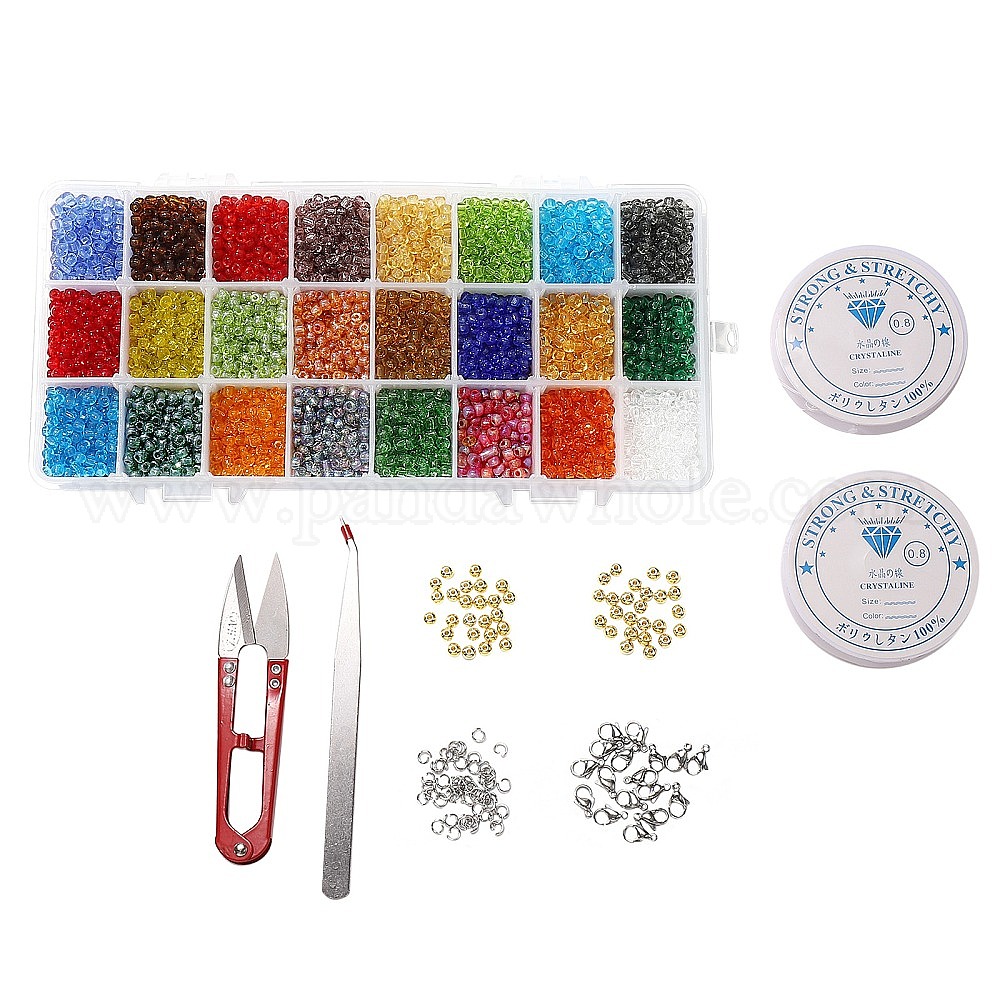 Наборы стрейч-ювелирных изделий своими руками, включить стеклянный бисер, иглы и ножницы из нержавеющей стали, пинцет для бусинок и застежки в виде лобстера, распорные бусины из сплава и железа