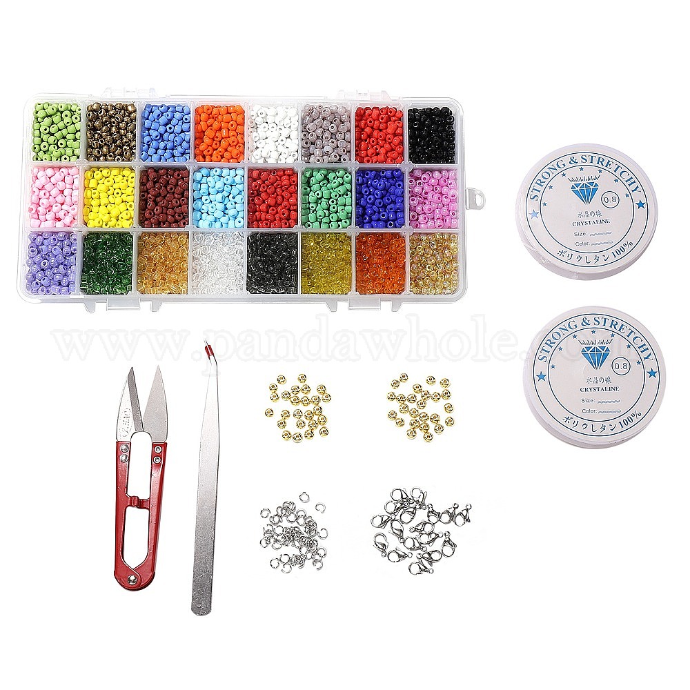 Наборы стрейч-ювелирных изделий своими руками, включить стеклянный бисер, иглы и ножницы из нержавеющей стали, пинцет для бусинок и застежки в виде лобстера, Бусины разделители из сплава