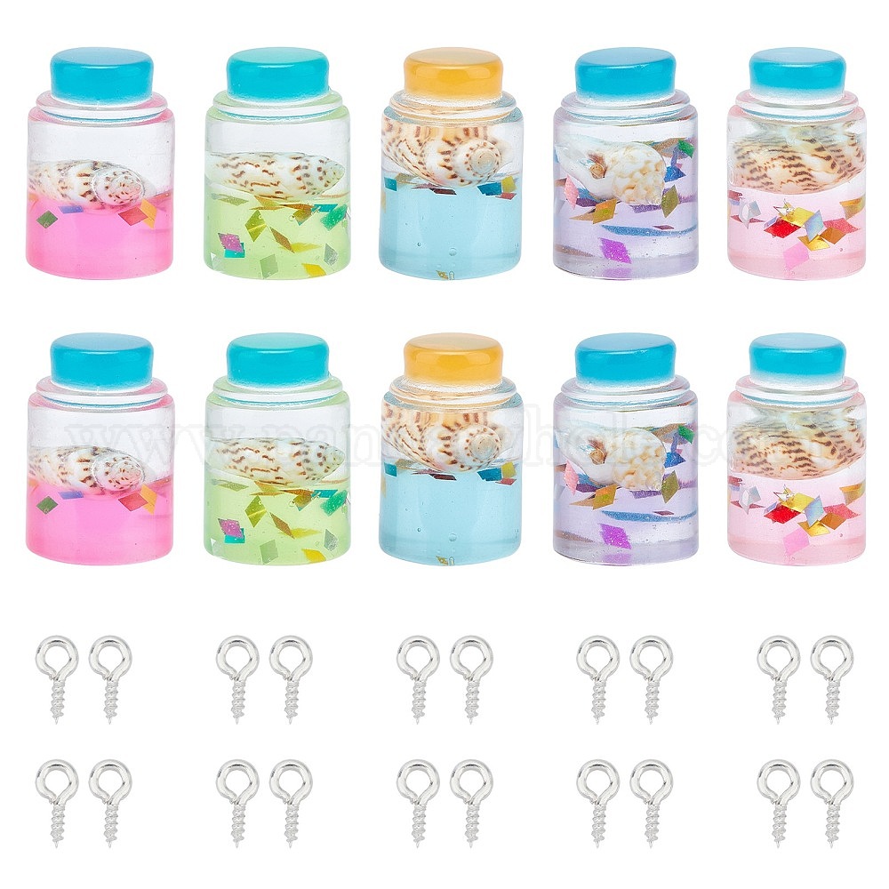 • (52) Непрозрачная лаванда Наборы для изготовления кулонов из бутылок, Включите аксессуары для ювелирных изделий из пластиковых бутылок, железный винт с проушиной, разноцветные, 21.4~22x14 мм, 30 шт / коробка