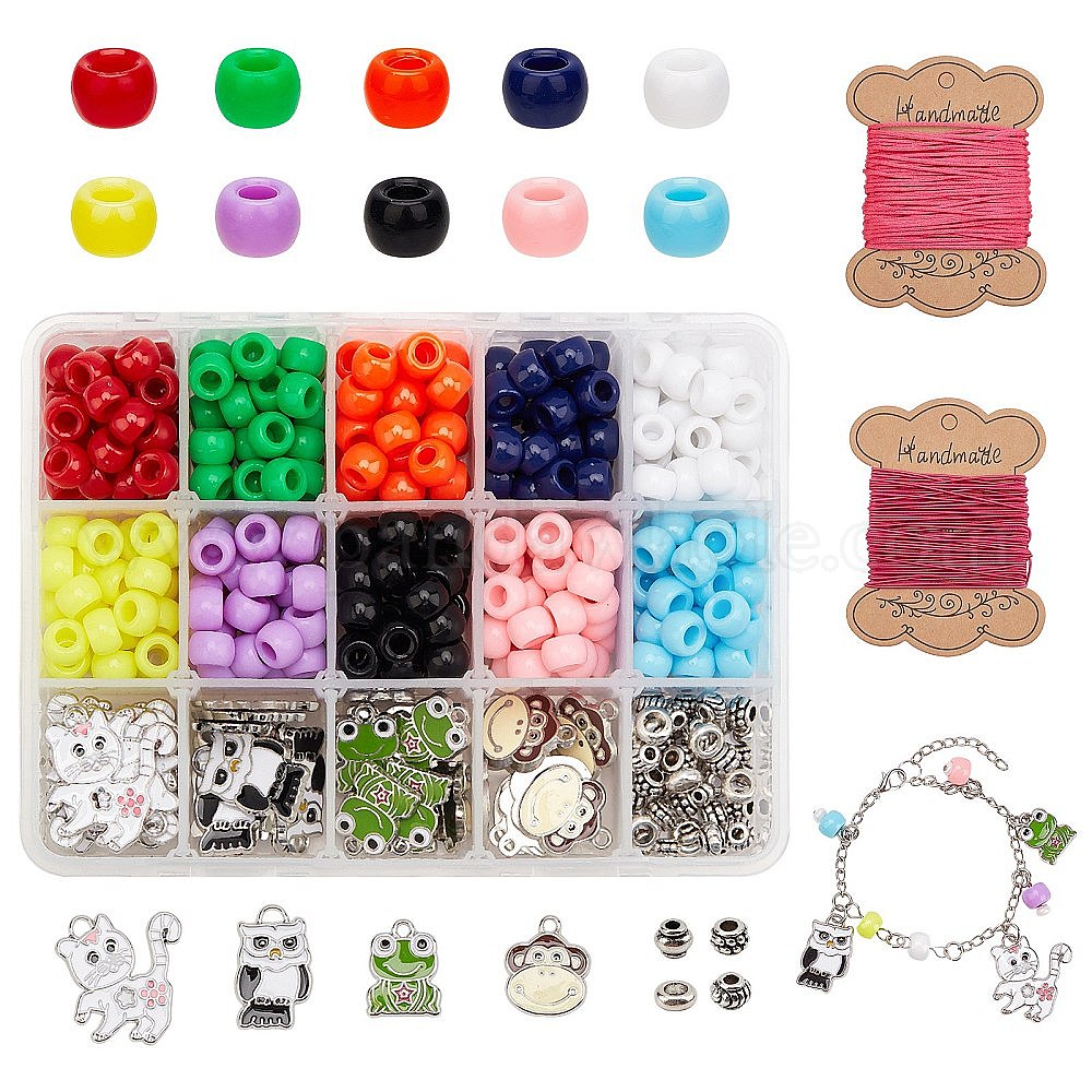 Наборы для изготовления подарочных браслетов на детский день своими руками, Включите бусины из смолы с большим отверстием, Бусины разделители из сплава , Кулон эмали сплава, эластичный шнур, Нейлоновая нить