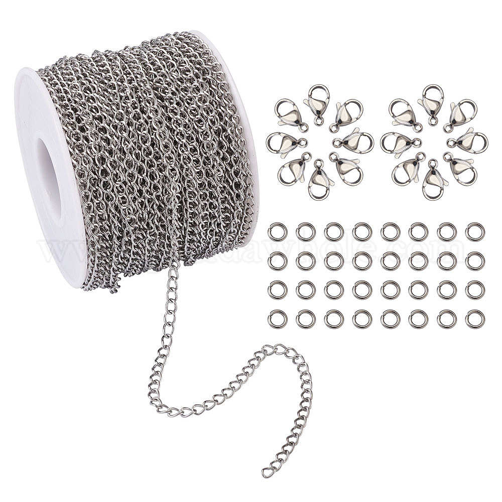• Нержавеющая Сталь Цвет Наборы для изготовления браслетов и ожерелий своими руками, в том числе бордюрные цепи из нержавеющей стали, застежки-клешни и открытые прыжковые кольца, цвет нержавеющей стали, 4x3x0.6 мм, около 25 м / рулон, 1roll