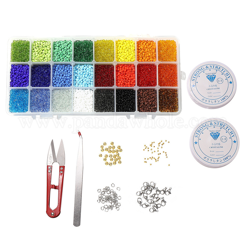Наборы стрейч-ювелирных изделий своими руками, в том числе стеклянный бисер, иглы и ножницы из нержавеющей стали, пинцет для бусинок и застежки в виде лобстера, распорные бусины из сплава и железа