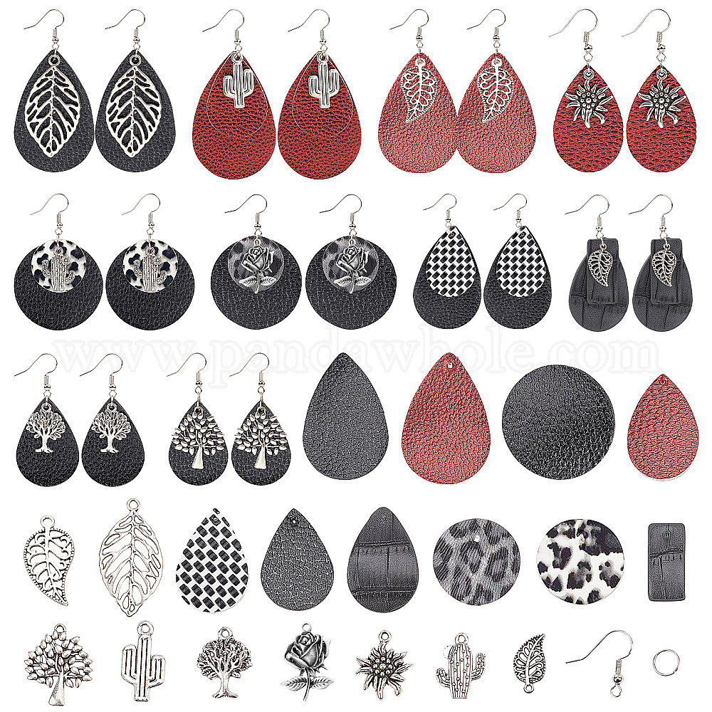 Наборы для самостоятельного изготовления сережек-подвесок из искусственной кожи, включая подвески из искусственной кожи и сплава, железные открытые прыжковые кольца и латунные крючки для серег