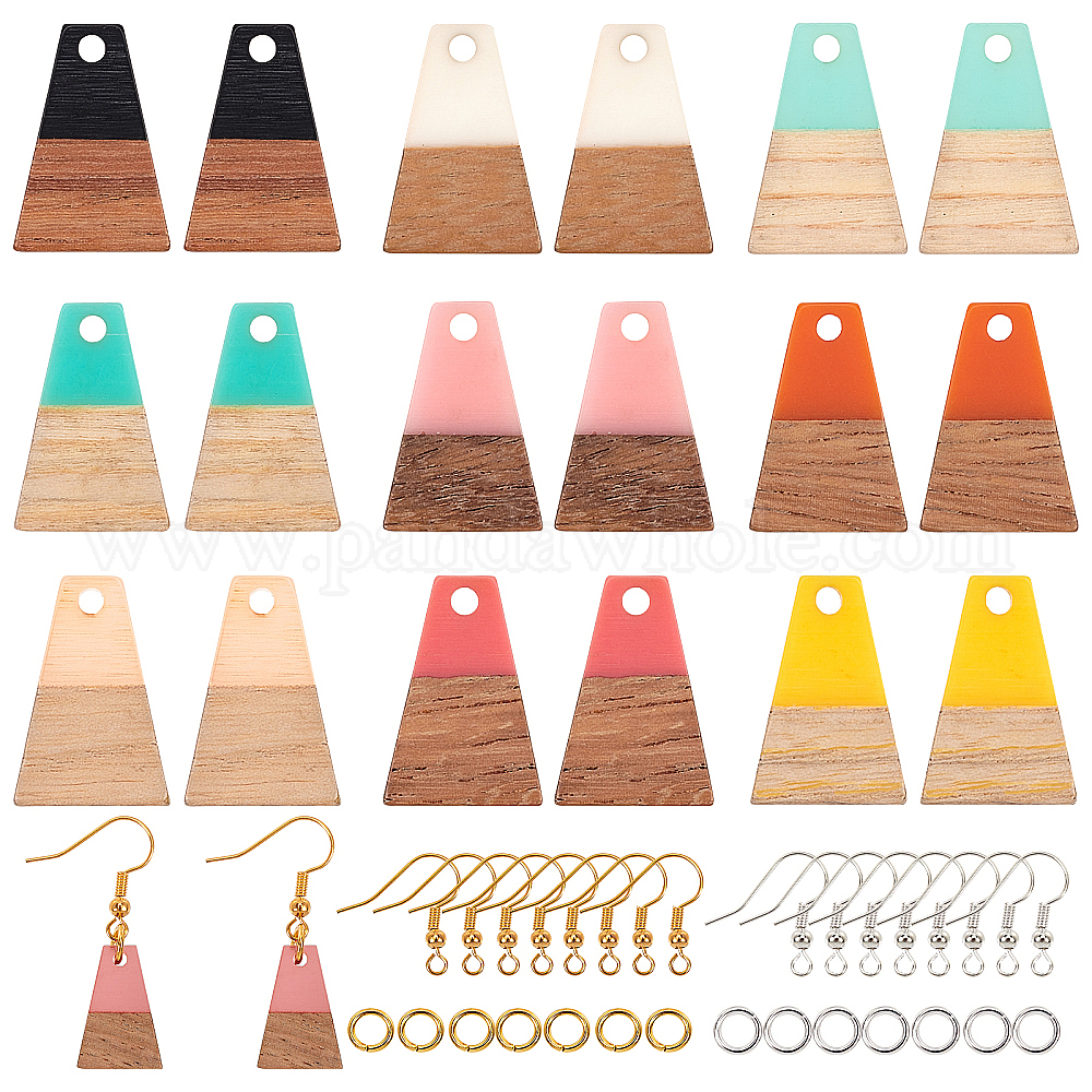 Наборы для изготовления сережек diy, включая подвески из смолы и дерева, медные крючки и кольца для сережек, трапециевидные