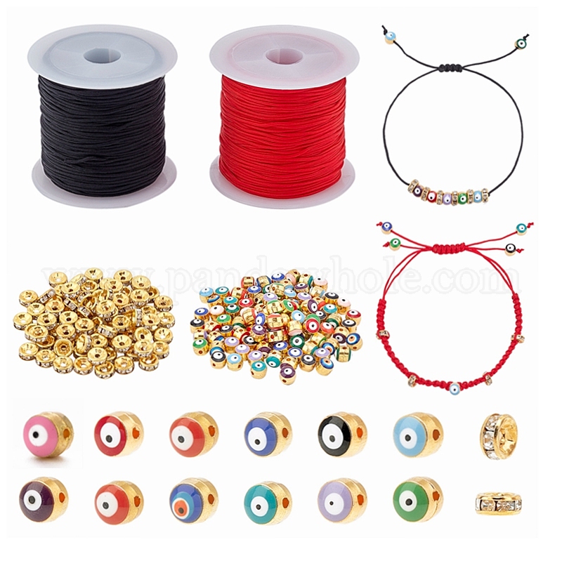Плетеные браслеты из бисера своими руками злые глаза, изготовление комплектов, в том числе европейские бусины из сплава эмали, Латунные бусины разделители для поставки стразов, полиэфирная нить