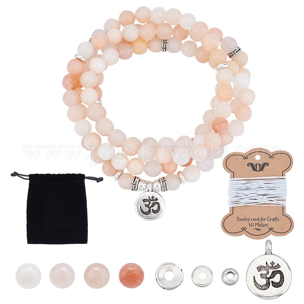 Наборы для изготовления браслетов в стиле буддийской обертки своими руками, в том числе бусины из натуральных драгоценных камней, эластичные шнуры, подвески и бусины из сплава в тибетском стиле