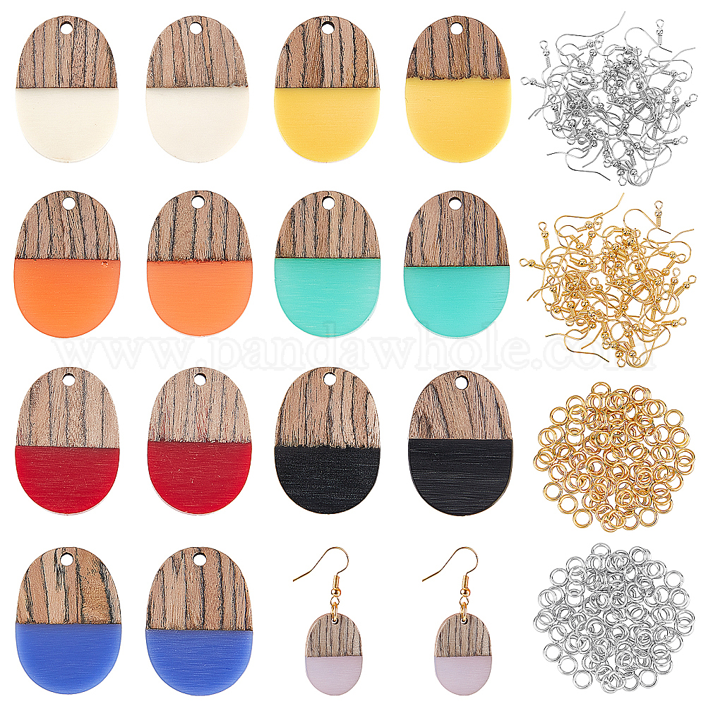 Сделай сам 8 пары овальных сережек из смолы и орехового дерева, в том числе кулоны, латунные крючки для серег и прыжковое кольцо