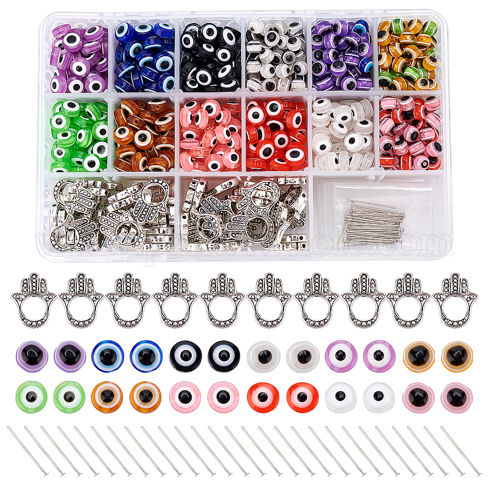 820шт. наборы для самостоятельного изготовления подвесок с изображением сглаза, включая шарики из смолы, рука из сплава мириам, латунные шпильки с плоской головкой