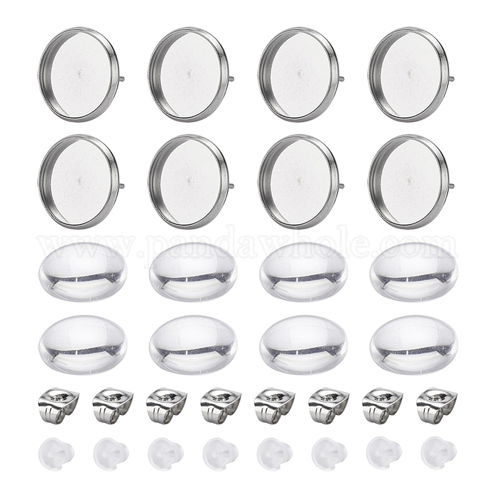 • Прозрачный Diy 50 пары плоских круглых сережек, наборы для изготовления, в том числе кабошоны из прозрачного стекла, 304 серьги-гвоздики из нержавеющей стали и ушные гайки, пластиковые гайки для ушей, прозрачные, лоток : 12 мм, штифты : 1 мм