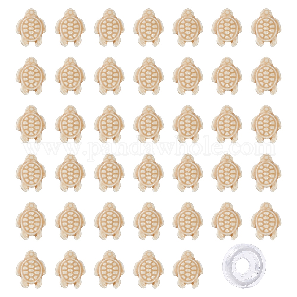 40шт. фарфоровые бусины ручной работы в виде черепахи, с 1 свернутой прочной эластичной эластичной нитью для изготовления эластичных браслетов своими руками (026Q9Y)