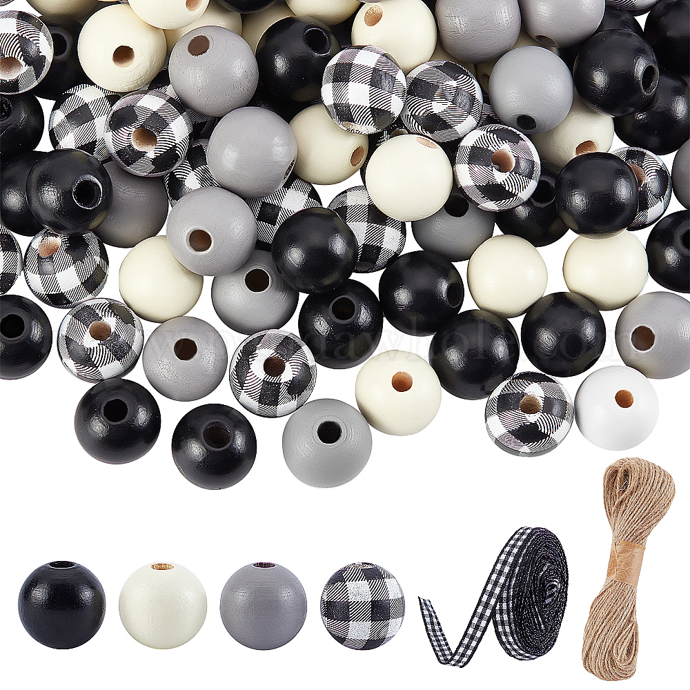 Наборы для самостоятельного изготовления украшений из деревянных бусин, в том числе 180 шт 4 цвета деревянные бусины, 1 связать джутовый шнур и 1 свернуть полиэфирную ленту.