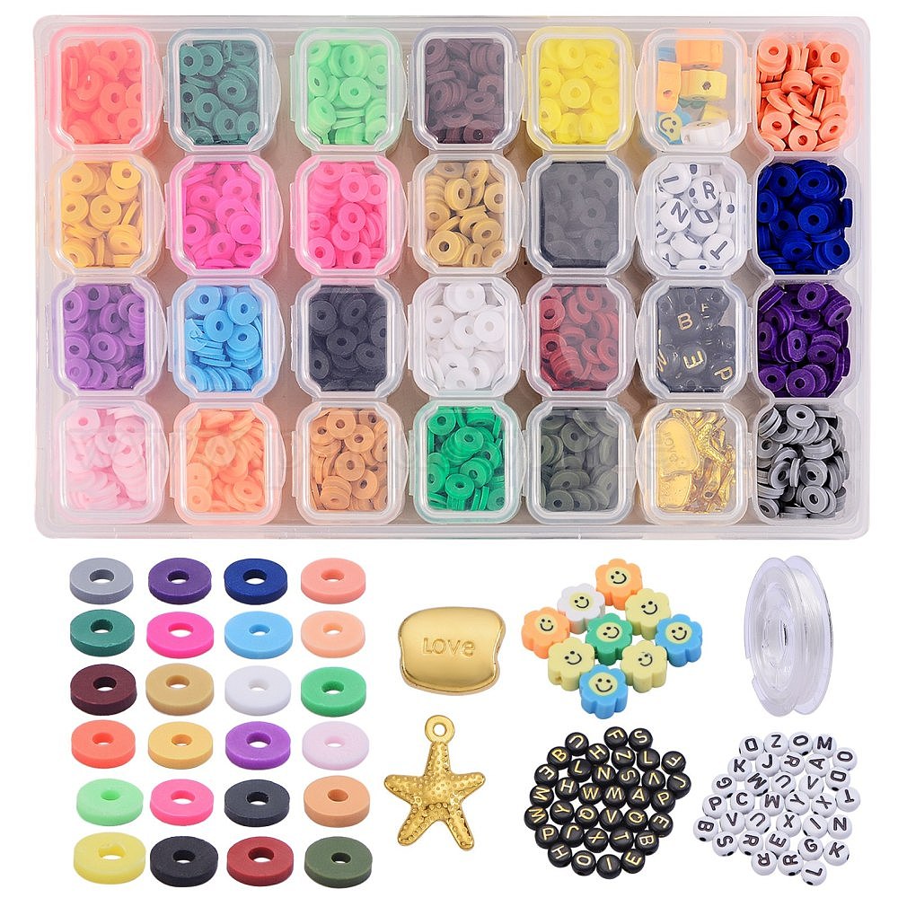 Наборы для изготовления эластичных браслетов своими руками, в том числе бусины из полимерной глины ручной работы, бусины и подвески из сплава и эластичная хрустальная нить