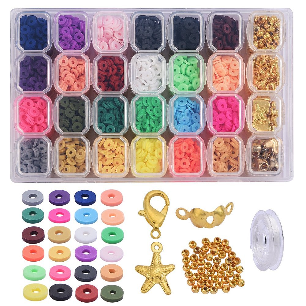 Наборы для изготовления эластичных браслетов своими руками, в том числе полимерная глина ручной работы, железо и пластиковые бусины, бусины и подвески из сплава, железные наконечники для бусинок и прыжковые кольца, застежки-клешни из цинкового сплава и эластичная хрустальная нить