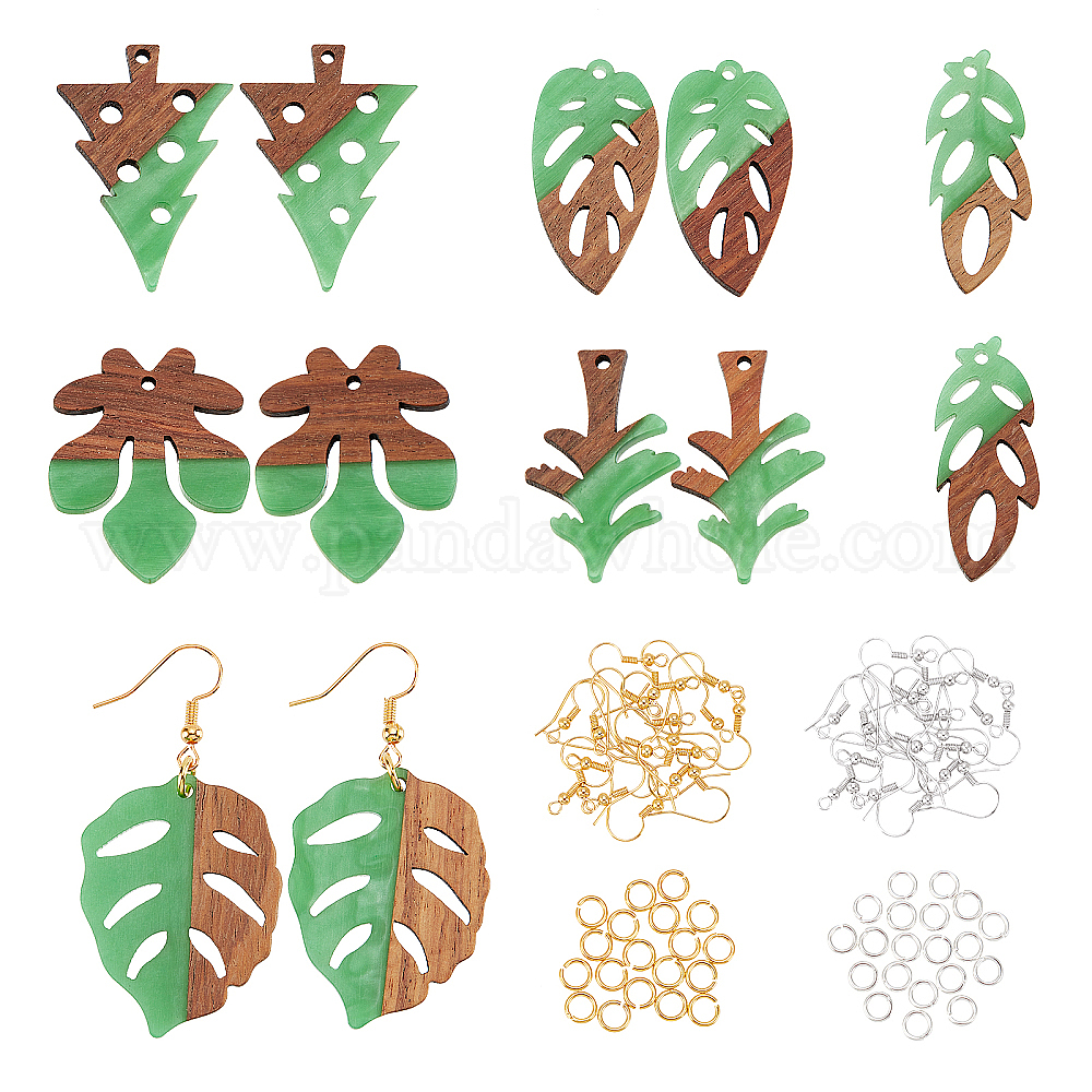 Наборы для изготовления сережек diy, 12 шт. 6 стильные подвески из непрозрачной смолы и орехового дерева, лист и дерево и цветок, 40 шт. 2 цвета латунных крючков для сережек и 3.87 g 2 цвета латунных прыжковых колец.