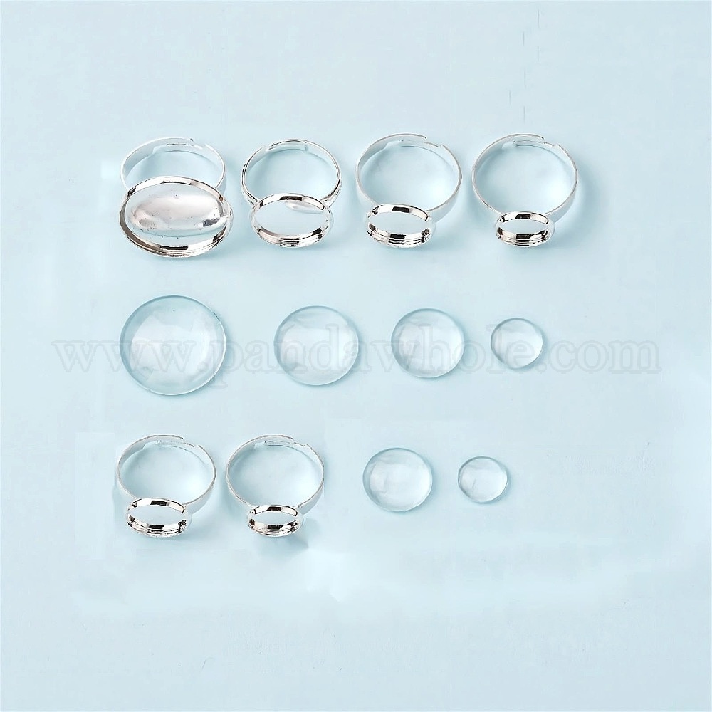 • Серебро 120шт 12 наборы для самостоятельного изготовления колец, включая регулируемые латунные кольцевые компоненты и стеклянные кабошоны, серебряные, 10 шт / стиль