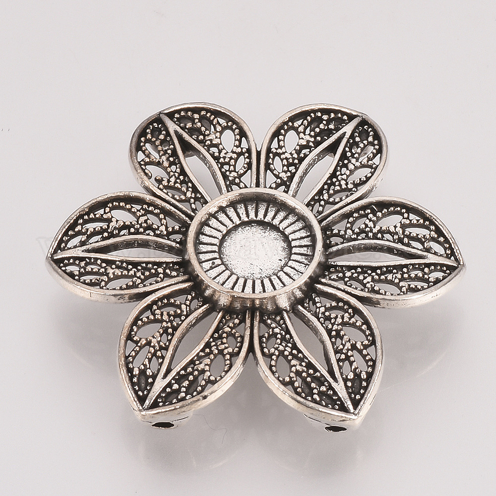 Настройки разъем сплава кабошон тибетском стиле, цветок, без кадмия и без свинца