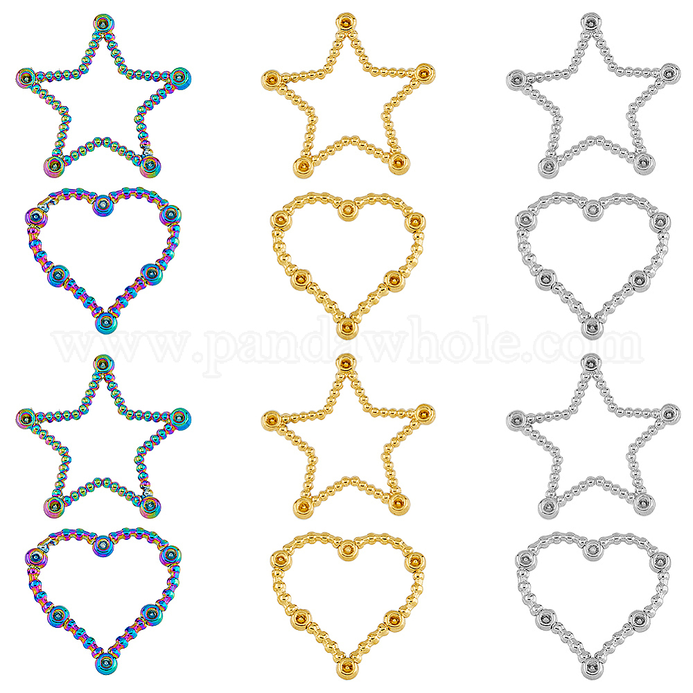 12 шт. 6 стили ионное покрытие (IP) 304 соединительное кольцо из нержавеющей стали со стразами, звезда и сердца