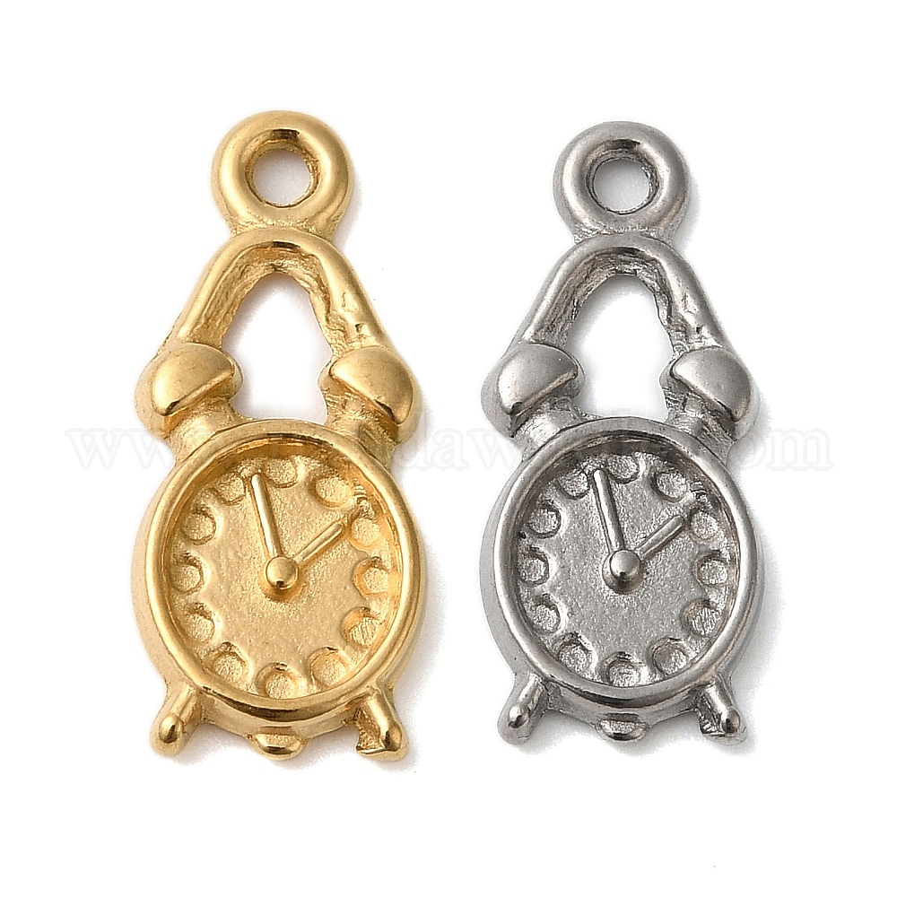 • Настоящее золото 18K Ионное покрытие (ip) 304 подвеска из нержавеющей стали со стразами, будильник, реальный 18 k позолоченный, пригодный для стразов 1 мм, 20x8x2 мм, отверстие : 1.6 мм