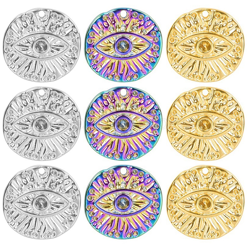 304 подвеска из нержавеющей стали со стразами, плоский круглый с шармом в виде глаз
