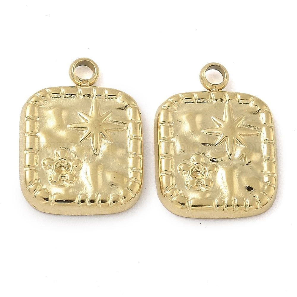 • Настоящее золото 14K Ионное покрытие (ip) 304 подвеска из нержавеющей стали со стразами, квадрат со звездным шармом, реальный 14 k позолоченный, пригодный для стразов 1 мм, 13x10x1.5 мм, отверстие : 1.6 мм