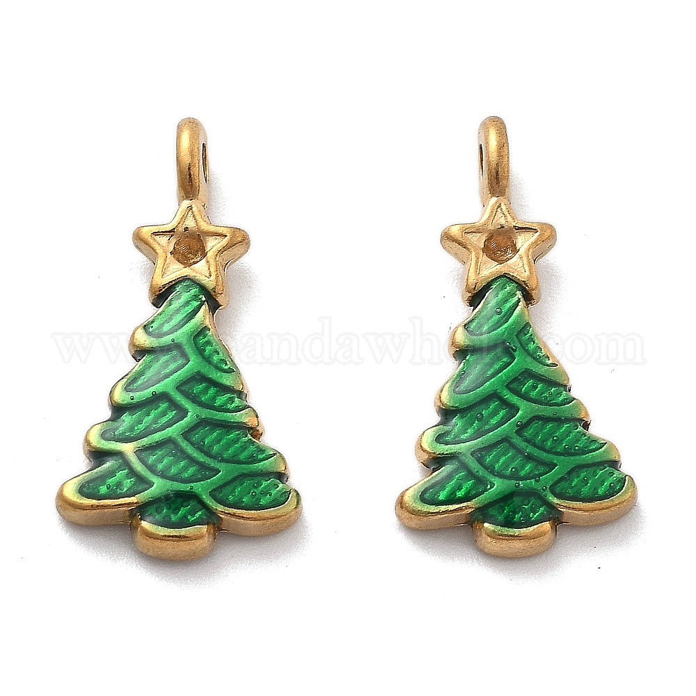 Ионное покрытие (ip) 304 подвеска из нержавеющей стали с эмалью и стразами, реальный 18 k позолоченный, рождественская елка (02Z72K)